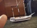 This was a very fun kit. I had no problems assembling until the last bit of running rigging of the yard braces. I made my own sails out of a old cotton/polyester