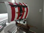 As usual I used only stuff I had around the house...it's a Viking warship that was used for quick and brutal raids. The sail is actually a 3/8 thick piece